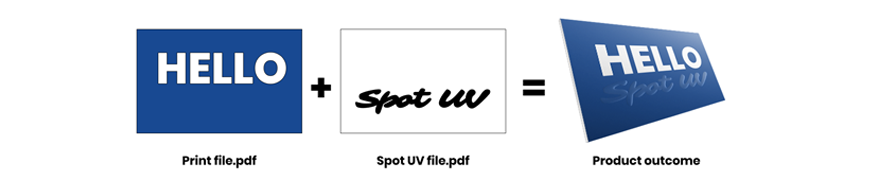 Sur le fichier de modèle UV spot, indiquez les zones UV spot en utilisant 100% K. Les zones non UV doivent être blanches. Pour de meilleurs résultats, assurez-vous que ce fichier est vectoriel.