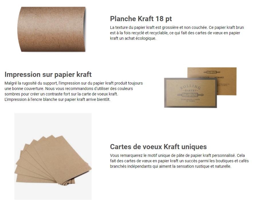 Les cartes de vœux Kraft sont imprimées sur du papier cartonné kraft de haute qualité 100% recyclable. L'impression sur du papier kraft peut donner à la carte de vœux la plus générique une apparence unique.